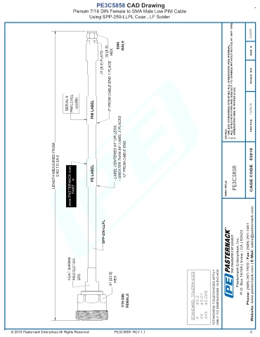 LENGTH MEASURED FROM END TO END www.PASTERNACK.com PART # PE LABEL - LABEL CENTERED 84'' OR LESS. - GREATER THAN 84'' LABEL 2 PLACES 12'' FROM CABLE END. DWG TITLE PE3C5858 CAGE CODE 53919