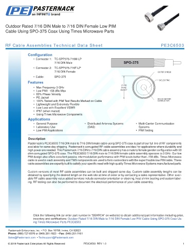 ohm corrugated SPO-375 coax. The PE3C6503 7/16 DIN male to 7/16 DIN female cable assembly operates to 3 GHz. Our low