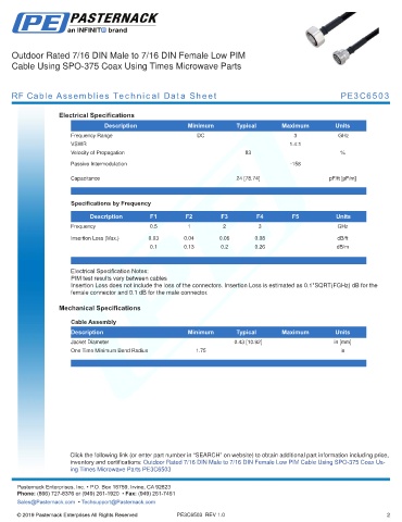 RF Cable Assemblies Technical Data Sheet PE3C6503