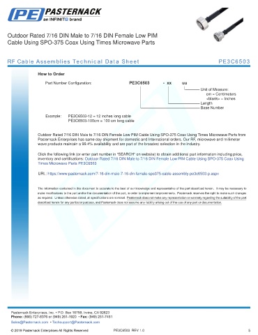 any representation or warranty regarding the suitability of the part described herein for any particular purpose, and Pasternack does not assume any liability arising out of the use of any part or documentation.