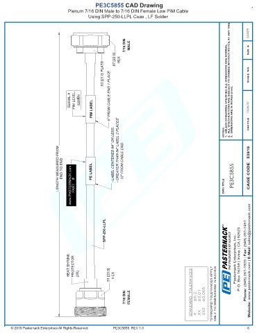 LENGTH MEASURED FROM END TO END www.PASTERNACK.com PART # PE LABEL - LABEL CENTERED 84'' OR LESS. - GREATER THAN 84'' LABEL 2 PLACES 12'' FROM CABLE END. DWG TITLE PE3C5855 CAGE CODE 53919
