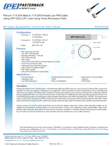 RF Cable Assemblies Technical Data Sheet PE3C6182