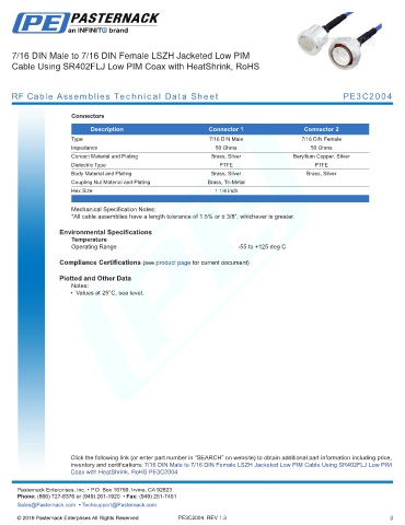 RF Cable Assemblies Technical Data Sheet PE3C2004