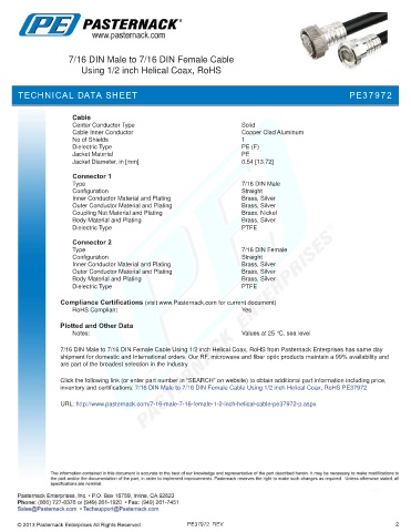 inventory and certifications: 7/16 DIN Male to 7/16 DIN Female Cable Using 1/2 inch Helical Coax, RoHS PE37972