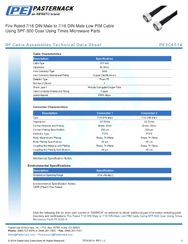 inventory and certifications: Fire Rated 7/16 DIN Male to 7/16 DIN Male Low PIM Cable Using SPF-500 Coax Using Times