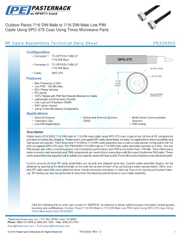 RF Cable Assemblies Technical Data Sheet PE3C6502