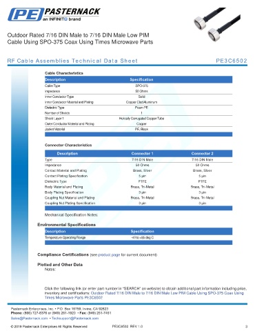 RF Cable Assemblies Technical Data Sheet PE3C6502