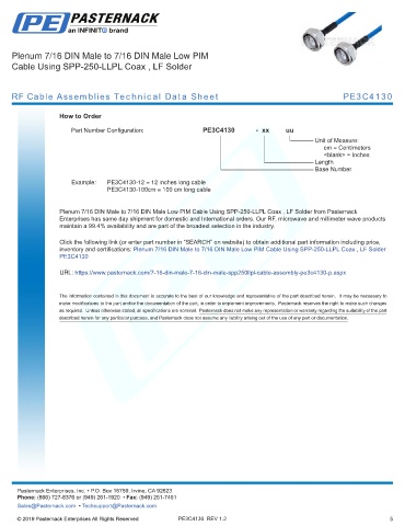 any representation or warranty regarding the suitability of the part described herein for any particular purpose, and Pasternack does not assume any liability arising out of the use of any part or documentation.