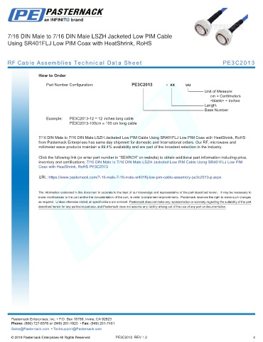 RF Cable Assemblies Technical Data Sheet PE3C2013