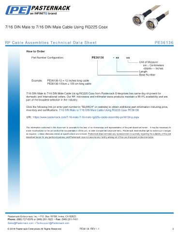 any representation or warranty regarding the suitability of the part described herein for any particular purpose, and Pasternack does not assume any liability arising out of the use of any part or documentation.