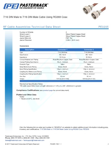 inventory and certifications: 7/16 DIN Male to 7/16 DIN Male Cable Using RG393 Coax PE3205
