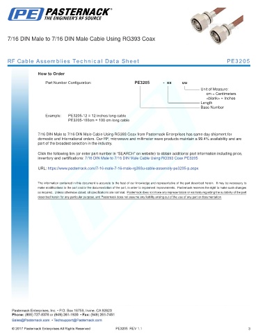 inventory and certifications: 7/16 DIN Male to 7/16 DIN Male Cable Using RG393 Coax PE3205