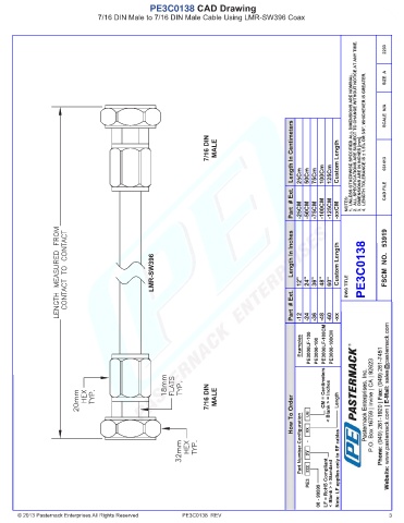 PE3C0138 CAD Drawing 7/16 DIN Male to 7/16 DIN Male Cable Using LMR-SW396 Coax © 2013 Pasternack Enterprises All Rights Reserved PE3C0138 REV 3