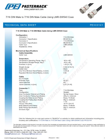 inventory and certifications: 7/16 DIN Male to 7/16 DIN Male Cable Using LMR-SW540 Coax PE3C0141