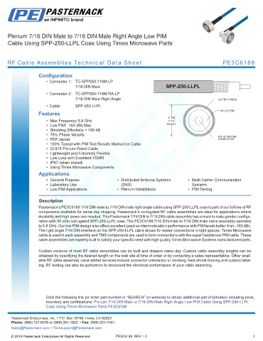 ration with 50 ohm corrugated SPP-250-LLPL coax. The PE3C6188 7/16 DIN male to 7/16 DIN male cable assembly operates