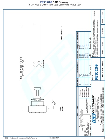 PE3C0209 CAD Drawing 7/16 DIN Male to Unterminated Lead Cable Using RG393 Coax © 2014 Pasternack Enterprises All Rights Reserved PE3C0209 REV 3