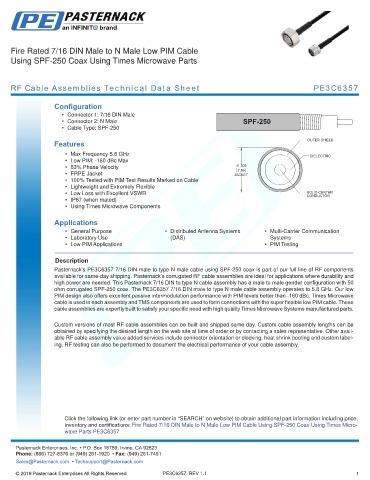 ohm corrugated SPF-250 coax. The PE3C6357 7/16 DIN male to type N male cable assembly operates to 5.8 GHz. Our low