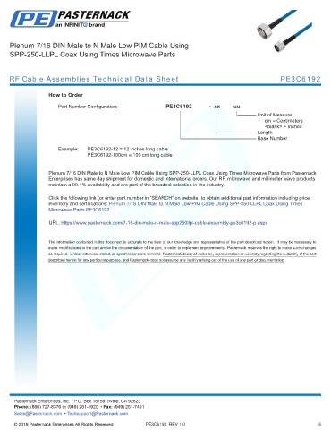 any representation or warranty regarding the suitability of the part described herein for any particular purpose, and Pasternack does not assume any liability arising out of the use of any part or documentation.