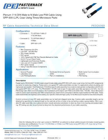 RF Cable Assemblies Technical Data Sheet PE3C6369