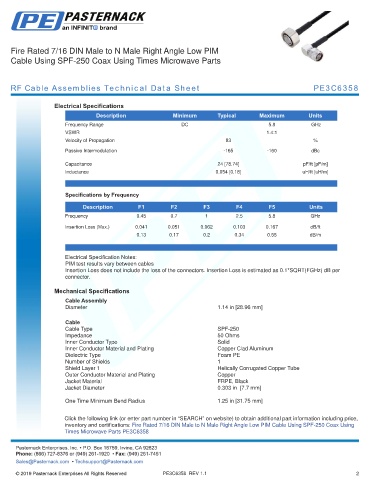 any representation or warranty regarding the suitability of the part described herein for any particular purpose, and Pasternack does not assume any liability arising out of the use of any part or documentation.
