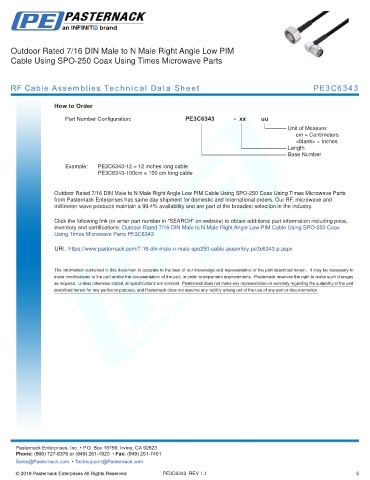 any representation or warranty regarding the suitability of the part described herein for any particular purpose, and Pasternack does not assume any liability arising out of the use of any part or documentation.