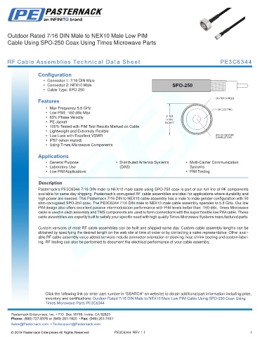 ohm corrugated SPO-250 coax. The PE3C6344 7/16 DIN male to NEX10 male cable assembly operates to 5.8 GHz. Our low