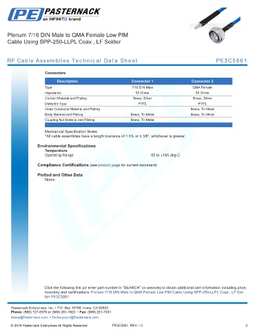 any representation or warranty regarding the suitability of the part described herein for any particular purpose, and Pasternack does not assume any liability arising out of the use of any part or documentation.