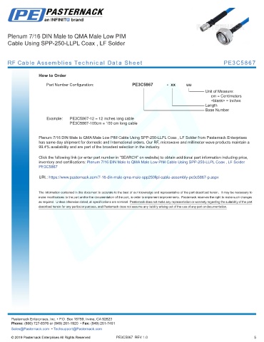 any representation or warranty regarding the suitability of the part described herein for any particular purpose, and Pasternack does not assume any liability arising out of the use of any part or documentation.