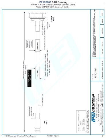 LENGTH MEASURED FROM END TO END www.PASTERNACK.com PART # PE LABEL - LABEL CENTERED 84'' OR LESS. - GREATER THAN 84'' LABEL 2 PLACES 12'' FROM CABLE END. DWG TITLE PE3C5867 CAGE CODE 53919