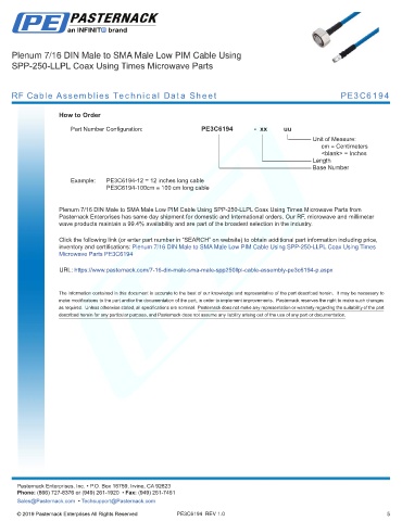 any representation or warranty regarding the suitability of the part described herein for any particular purpose, and Pasternack does not assume any liability arising out of the use of any part or documentation.