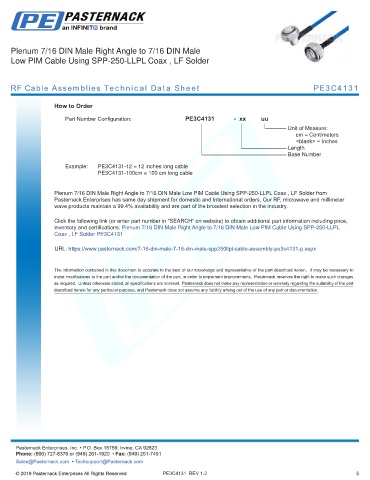 any representation or warranty regarding the suitability of the part described herein for any particular purpose, and Pasternack does not assume any liability arising out of the use of any part or documentation.