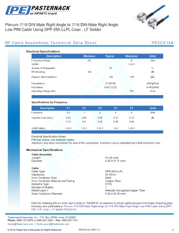 RF Cable Assemblies Technical Data Sheet PE3C4144