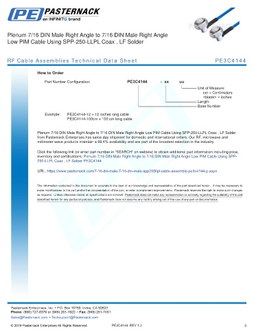 any representation or warranty regarding the suitability of the part described herein for any particular purpose, and Pasternack does not assume any liability arising out of the use of any part or documentation.