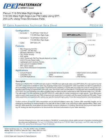 figuration with 50 ohm corrugated SPP-250-LLPL coax. The PE3C6189 7/16 DIN male to 7/16 DIN male cable assembly operates