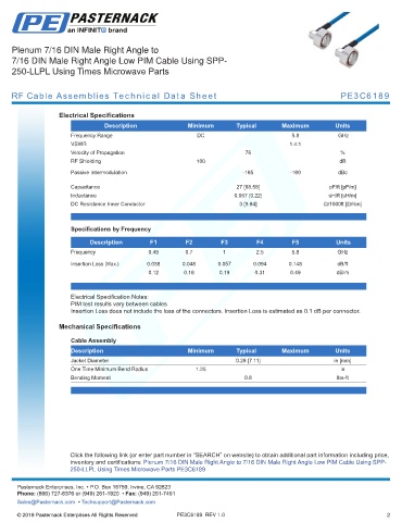 RF Cable Assemblies Technical Data Sheet PE3C6189