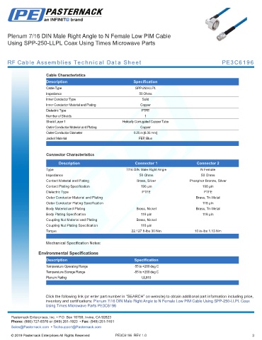 RF Cable Assemblies Technical Data Sheet PE3C6196