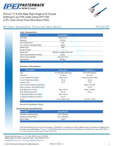 RF Cable Assemblies Technical Data Sheet PE3C6197