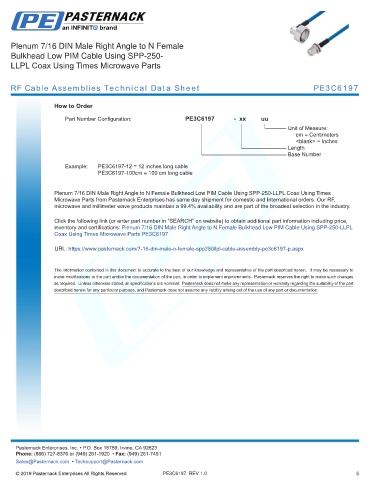 any representation or warranty regarding the suitability of the part described herein for any particular purpose, and Pasternack does not assume any liability arising out of the use of any part or documentation.
