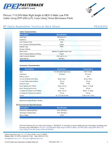 inventory and certifications: Plenum 7/16 DIN Male Right Angle to NEX10 Male Low PIM Cable Using SPP-250-LLPL