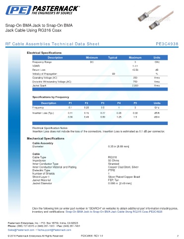 RF Cable Assemblies Technical Data Sheet PE3C4938