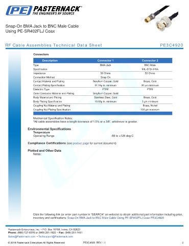 RF Cable Assemblies Technical Data Sheet PE3C4920