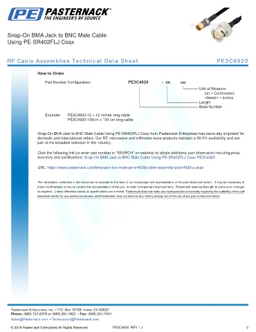URL: https://www.pasternack.com/bma-jack-bnc-male-pe-sr402flj-cable-assembly-pe3c4920-p.aspx