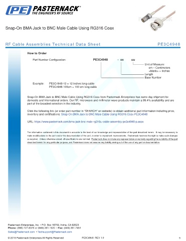 any representation or warranty regarding the suitability of the part described herein for any particular purpose, and Pasternack does not assume any liability arising out of the use of any part or documentation.