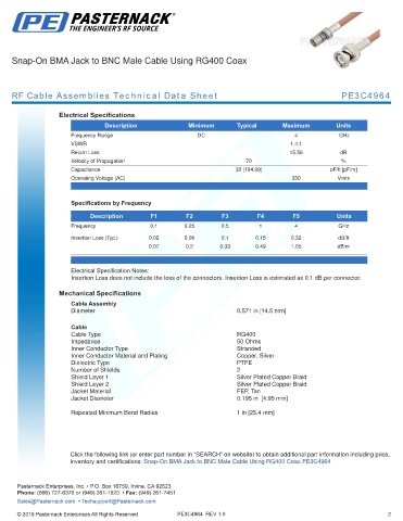 RF Cable Assemblies Technical Data Sheet PE3C4964