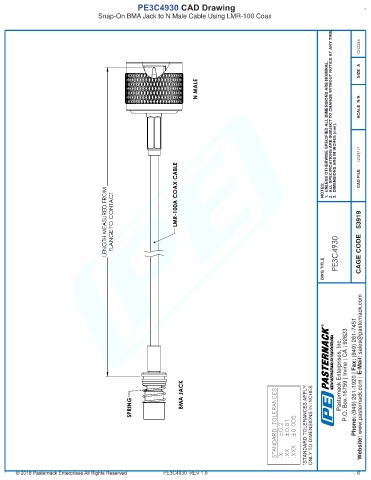 *STANDARD TOLERANCES APPLY ONLY TO DIMENSIONS IN INCHES - Website: www.pasternack.com |