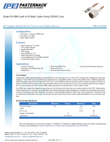RF Cable Assemblies Technical Data Sheet PE3C4960