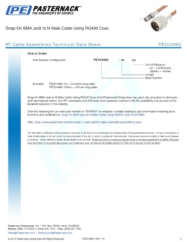 RF Cable Assemblies Technical Data Sheet PE3C4960