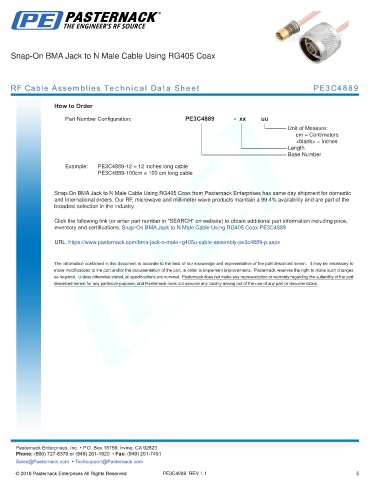 RF Cable Assemblies Technical Data Sheet PE3C4889