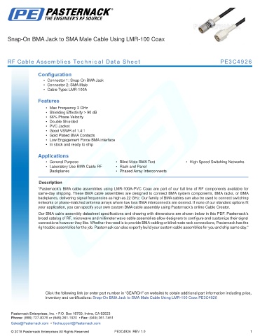 RF Cable Assemblies Technical Data Sheet PE3C4926