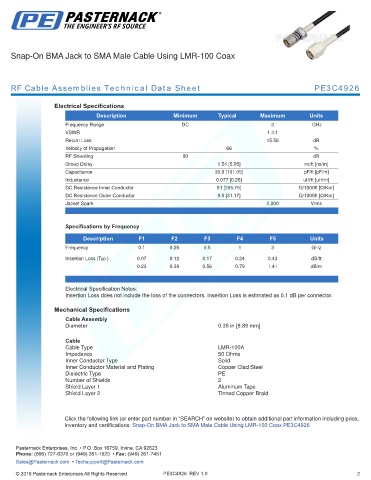 RF Cable Assemblies Technical Data Sheet PE3C4926